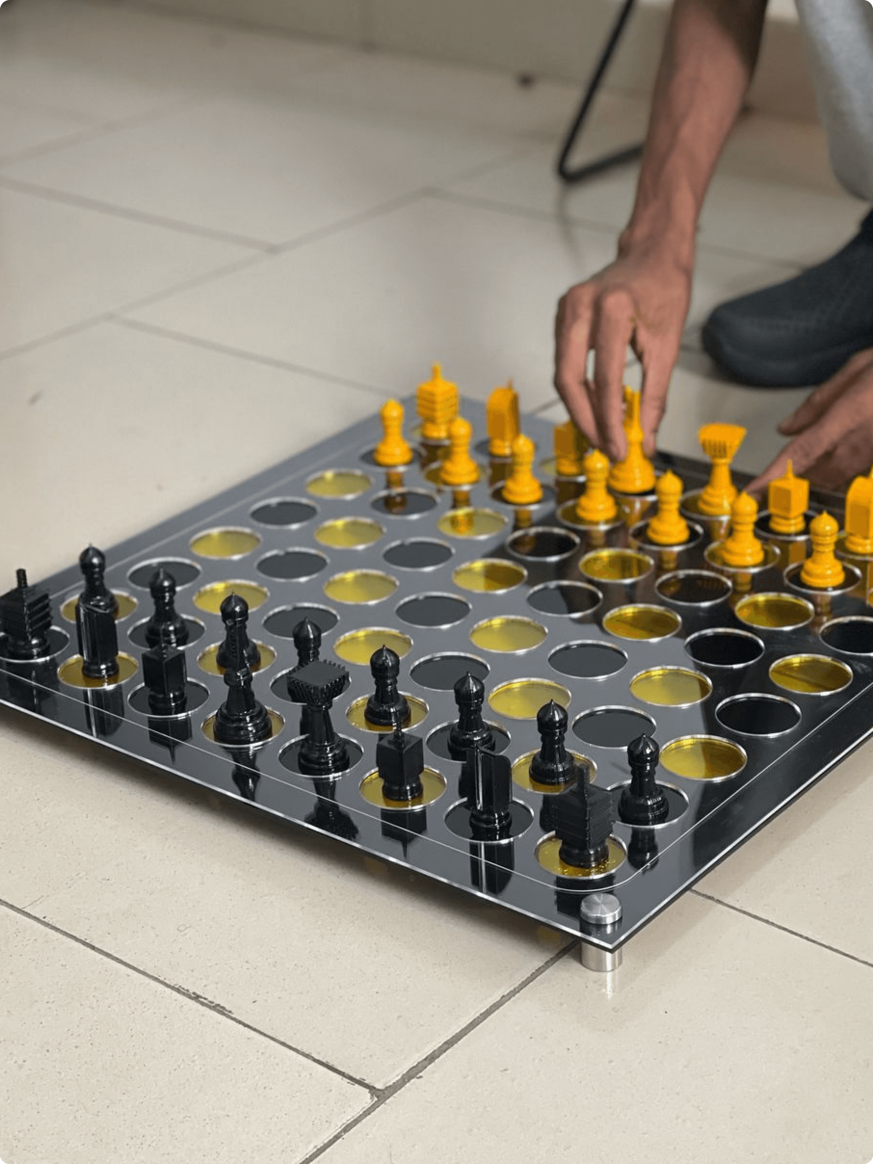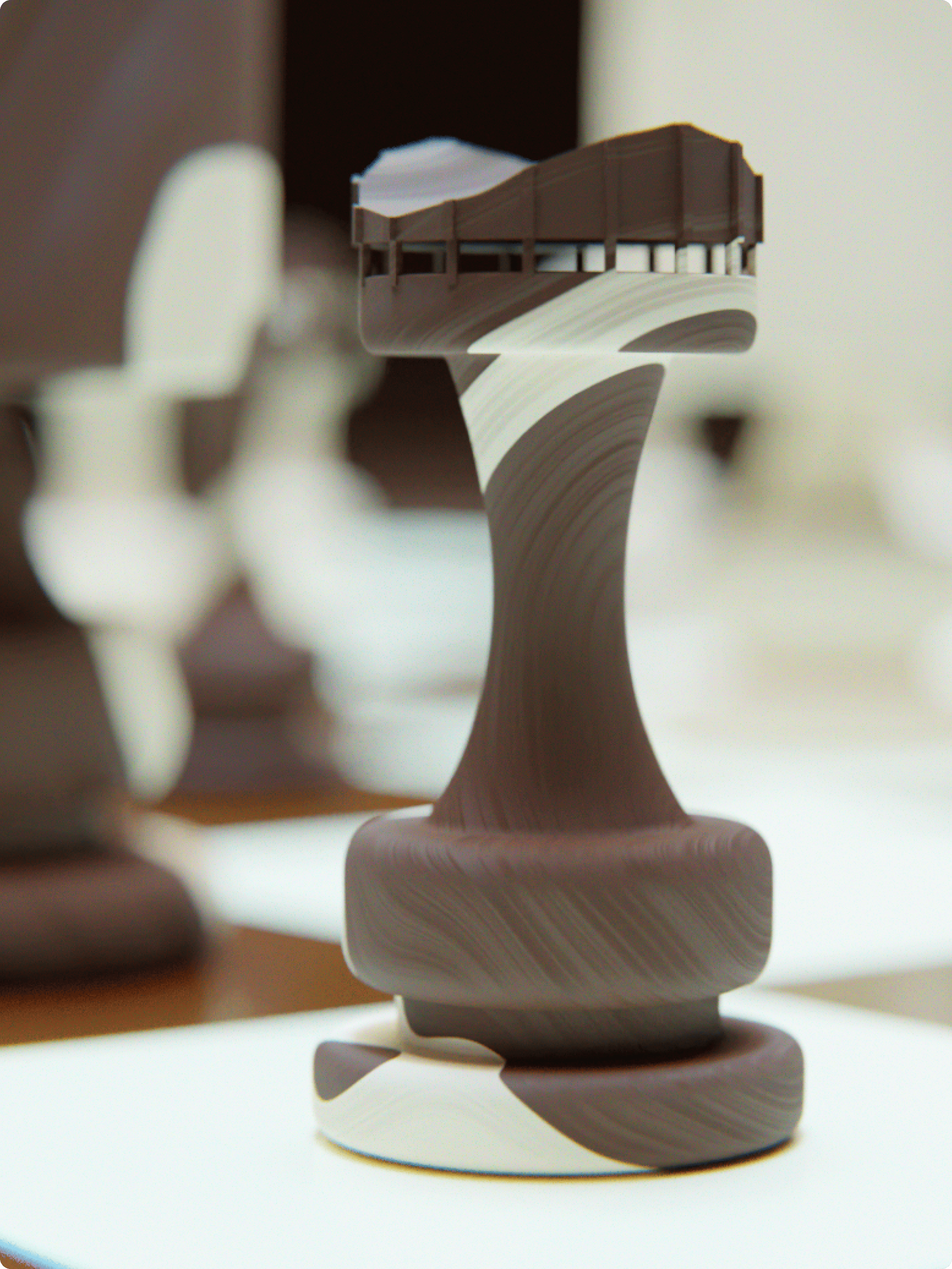 Inspired by Tunde Onakoya’s Chess in Slums Africa project, we reimagined the game of chess in an amalgam of time-honored strategy and societal and architectural expression. From the island to the mainland of Lagos, it’s an exhibit of heritage. A familiar terrain Sporting earthy tones of kaolin and loam, with a wood-grain finish reminiscent of the contour lines on maps, each piece is modeled after notable landmarks in Lagos. From the imposing Lekki-Ikoyi Link Bridge to the resplendent Civic Tower, our favorite places are in the fray. Flair-some moves Cuing the social rite of alternate monikers, we made stylized spelling variants of the names of the chess pieces. The result: chess pieces with an anthropomorphic swagger. And what’s better than a good move? A flair-some one.